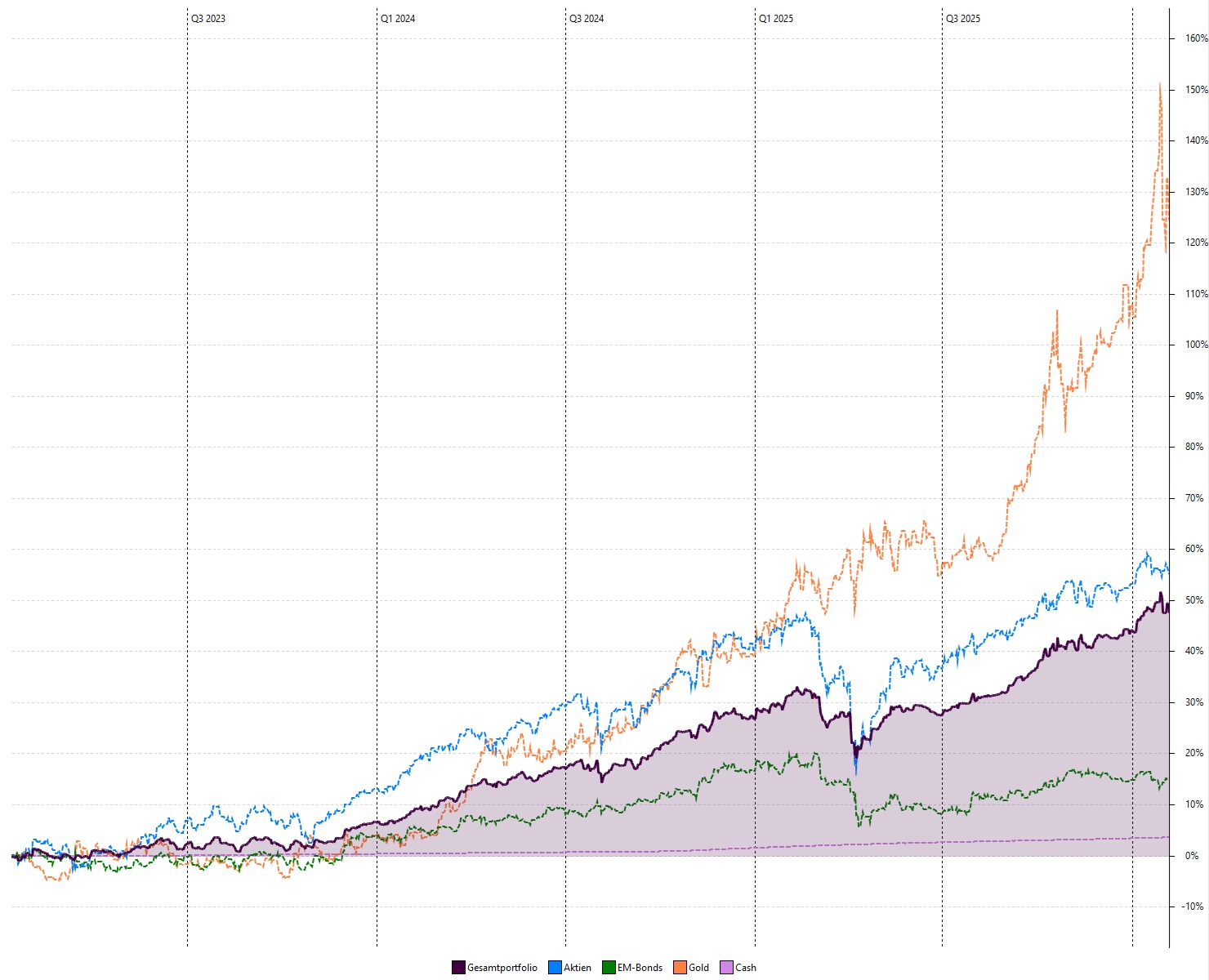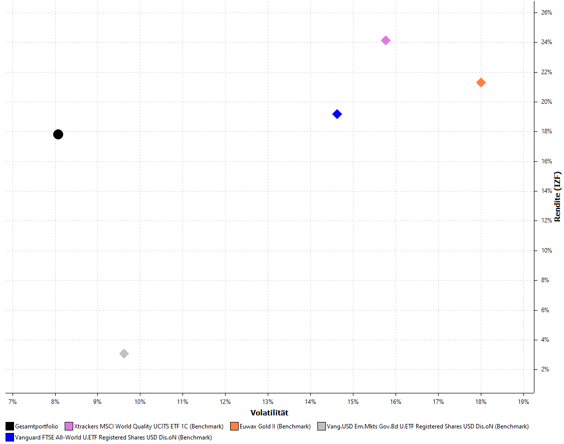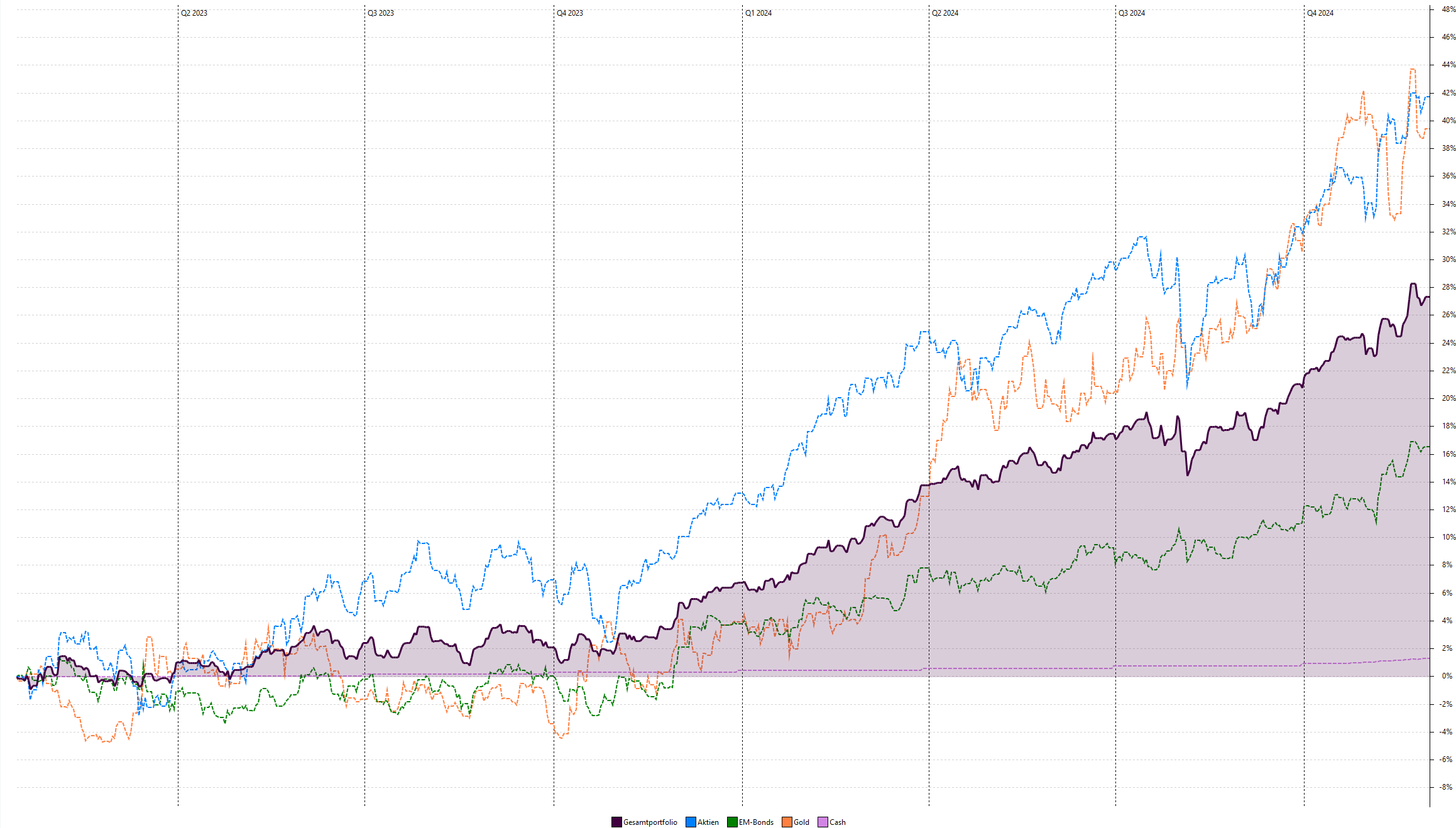 1. Seit 21.10.2024 ist mein risikofreier Anteil in einem Geldmarktfond investiert. Dabei wurde in das folgende Produkt investiert: Xtrackers II EUR Overnight Rate Swap UCITS ETF 1C (DBX0AN). Für diese Änderung gibt es mehrere Gründe. In erster Linie wollte ich das Portfolio in einem Depot zusammenführen – vorher ein Tagesgeldkonto bei Bank X und ein Depot bei Bank Y. Der zweite Grund ist die aktuell höhere Rendite von über 3,1% (vgl. €STR) – vorher 0,75% Tagesgeldzins. Und drittens ist dieser ETF thesaurierend. Damit ergibt sich zumindest auf dem Papier ein steuerlicher Vorteil.