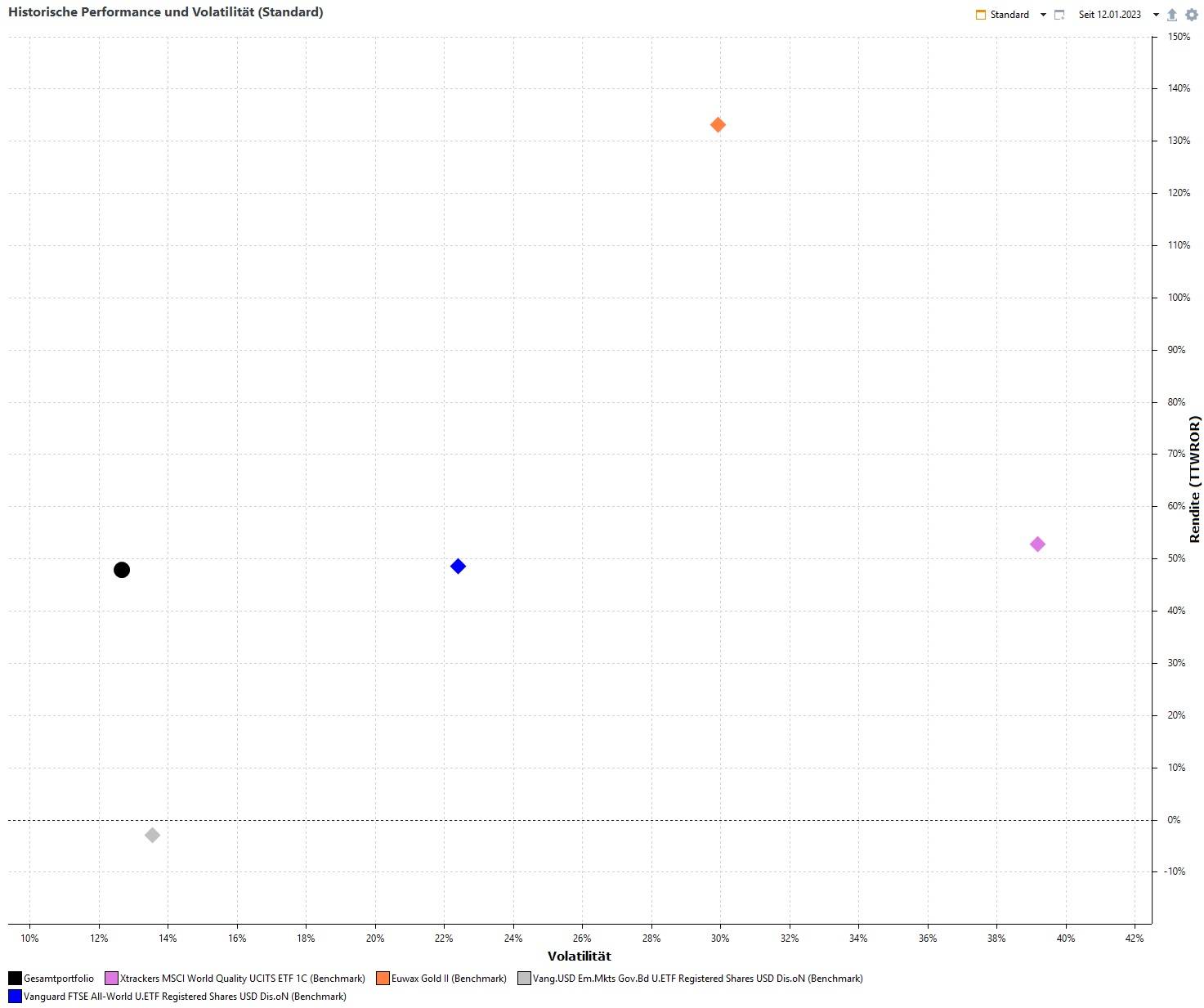Die vier Assetklassen werden mit einem Sparplan monatlich und fast gebührenfrei bespart. Hier habe ich die Möglichkeit durch Anpassung der Sparrate ein Rebalancing vorzunehmen. Sollte das Portfolio etwas größer geworden sein, bin ich bereit, quartalsweise oder wenigstens einmal halbjährlich die Zielgewichtung wieder herzustellen. Dabei sind Verkäufe und Käufe von Anteilen nötig, welche Gebühren und ggf. auch Steuerzahlungen verursachen.